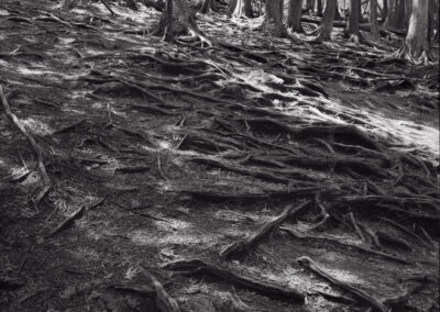 Many millennia after forests learned how, humans are discovering that trees have complex vascular, mycorrhizal, fungal, electrical, and pheromonal ways of networking and relying on one another for species survival. They are communal, familial, and have symbiotic relationships with a diverse range of organisms in the forest floor and with one another. Trees share nutrients, light, threat signals, adaptive responses, and become stronger through community than when thinned or separated. Undamaged forests live in interconnected cooperation, not in competition as once we thought. They’ve evolved to share resources, to continuously adapt and nurture.